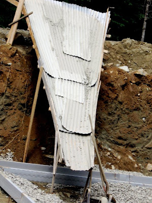Brad's "homemade" chute for pouring the stone in the foundation. (I believe it was very creative.) The important thing is it worked!